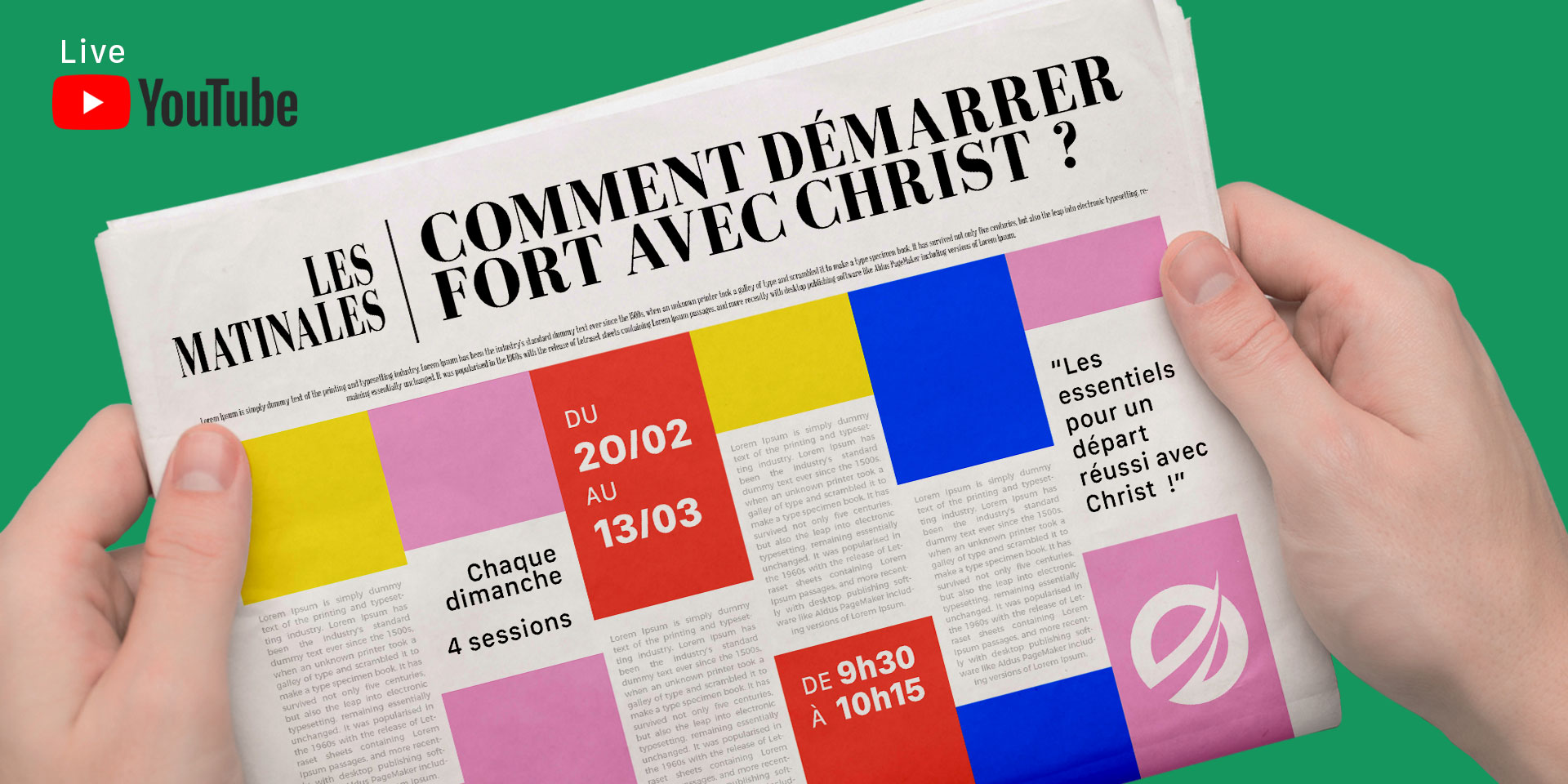 Chaque dimanche du 20 février au 13 mars (9h30-10h15), nous vous invitons à participer à cette Matinale « Comment démarrer fort avec Christ » ?
