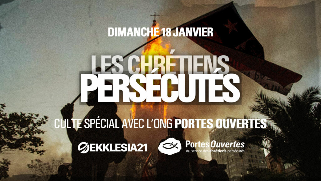 L’église Ekklesia 21 est fière de vous proposer un culte spécial consacré aux chrétiens persécutés dans le monde, en présence d’Anthony Granger, de l’ONG « Portes Ouvertes France » (portesouvertes.fr)