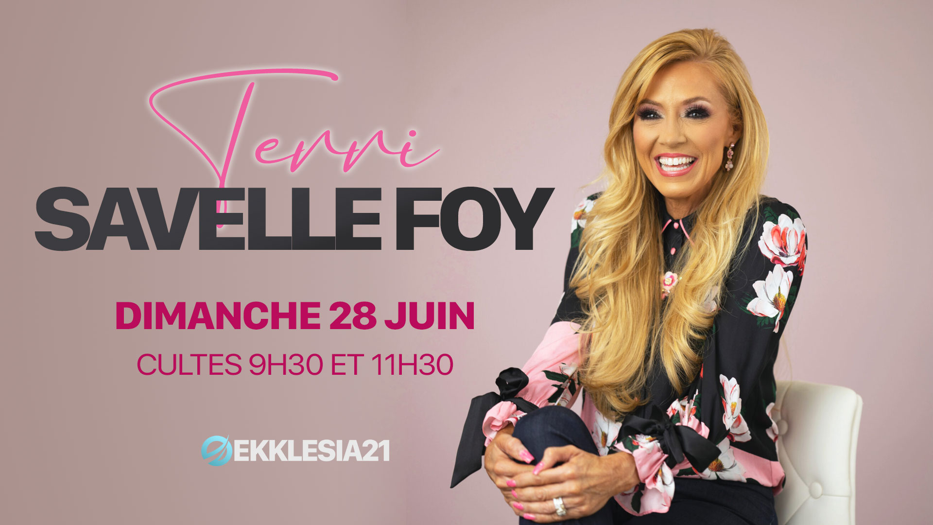 L’église EK21 à l’immense plaisir de recevoir Terri Savelle Foy le 28 Juin 2026 ; auteure, conférencière internationale et coach en réussite reconnue pour son message inspirant sur le développement personnel et la foi. Elle est la fondatrice de l’organisation Terri Savelle Foy Ministries (france.terri.com), à travers laquelle elle aide des millions de personnes à clarifier leur vision, fixer des objectifs et transformer leurs rêves en réalité.