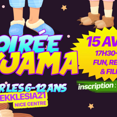 Comme chaque année au printemps, l’église EK est heureuse d’organiser pour les 6-12 ans, une soirée pyjama dont elle a le secret ! Au programme : jeux, maquillage, diner et film sous la tente, le tout arrosé de chocolat chaud chamallow évidement. Ouvert à tous les enfants et leur parent accompagnateur, sur inscription uniquement. Pour…